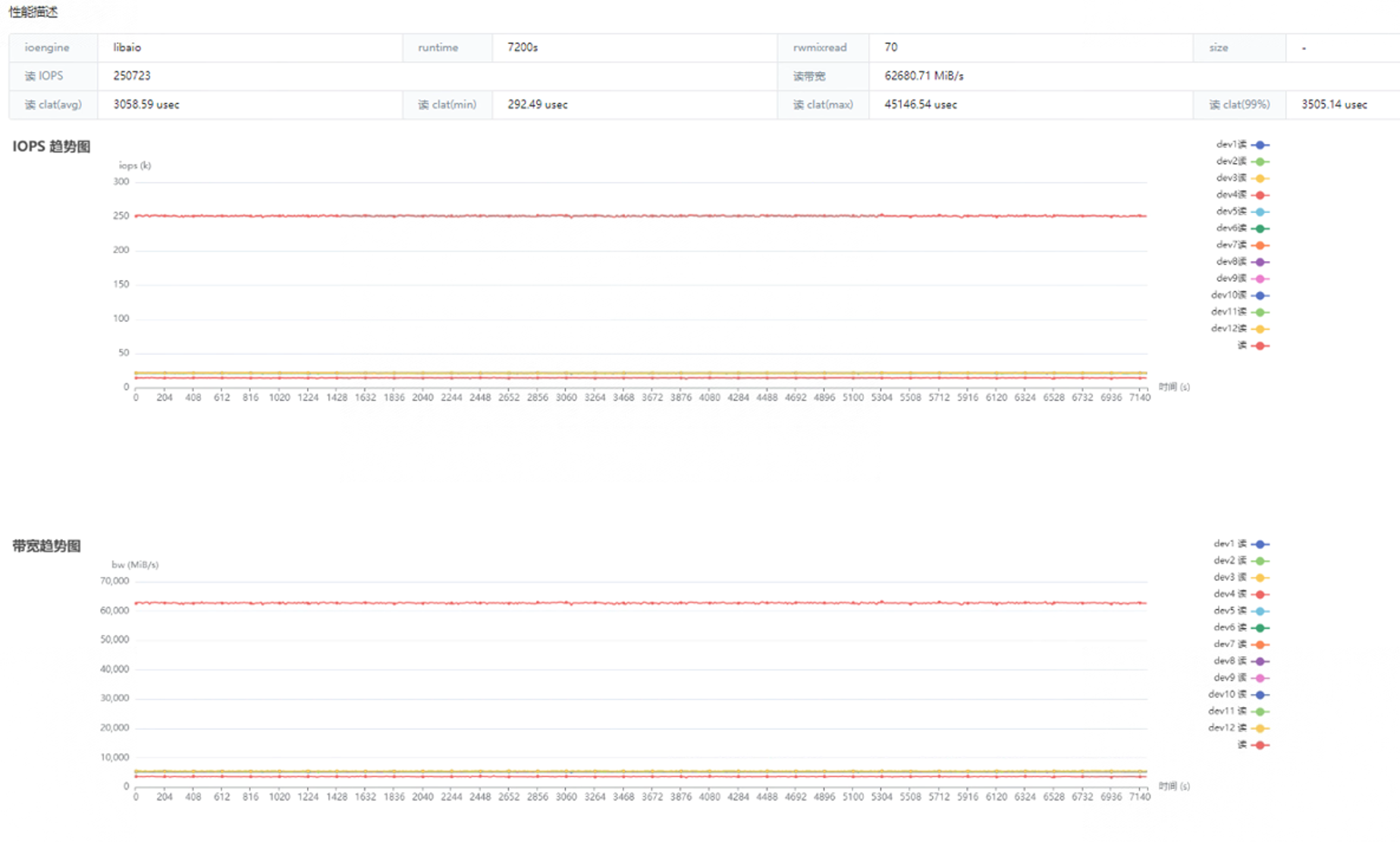 首先是存储性能测试,主要针对榫卯超融合中的分布式存储进行,包括单卷性能、集群性能、小 I/O 随机读写、大 I/O 顺序读写、长稳性能测试等。详细测试数据如下: