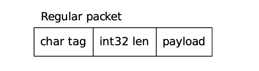 客户端和服务端所有通信都通过消息流进行。消息的第一个字节标识消息类型,随后四个字节标识消息内容的长度(该长度包括这四个字节本身),具体的消息内容由消息类型决定。