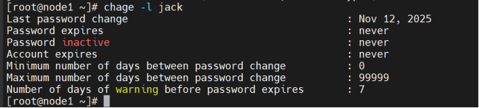 Chage命令查看密码过期时间