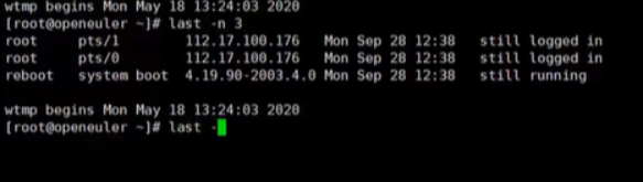 Last -n 3表示显示最近三条登陆记录