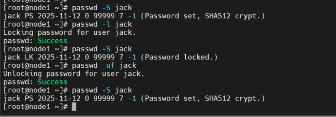 将jack账户锁定,测试结果后解除