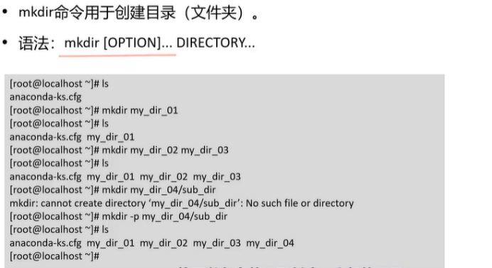 - mkdir :创建目录, mkdir new_dir (单级目录)、 mkdir -p dir1/dir2 (递归创建多级目录,避免“父目录不存在”报错)。