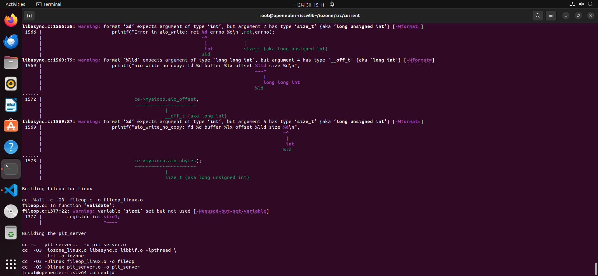本地编译成功之后,再试试在openEuler RISC-V上重新编译,发现也成功了(编译命令:make linux)。