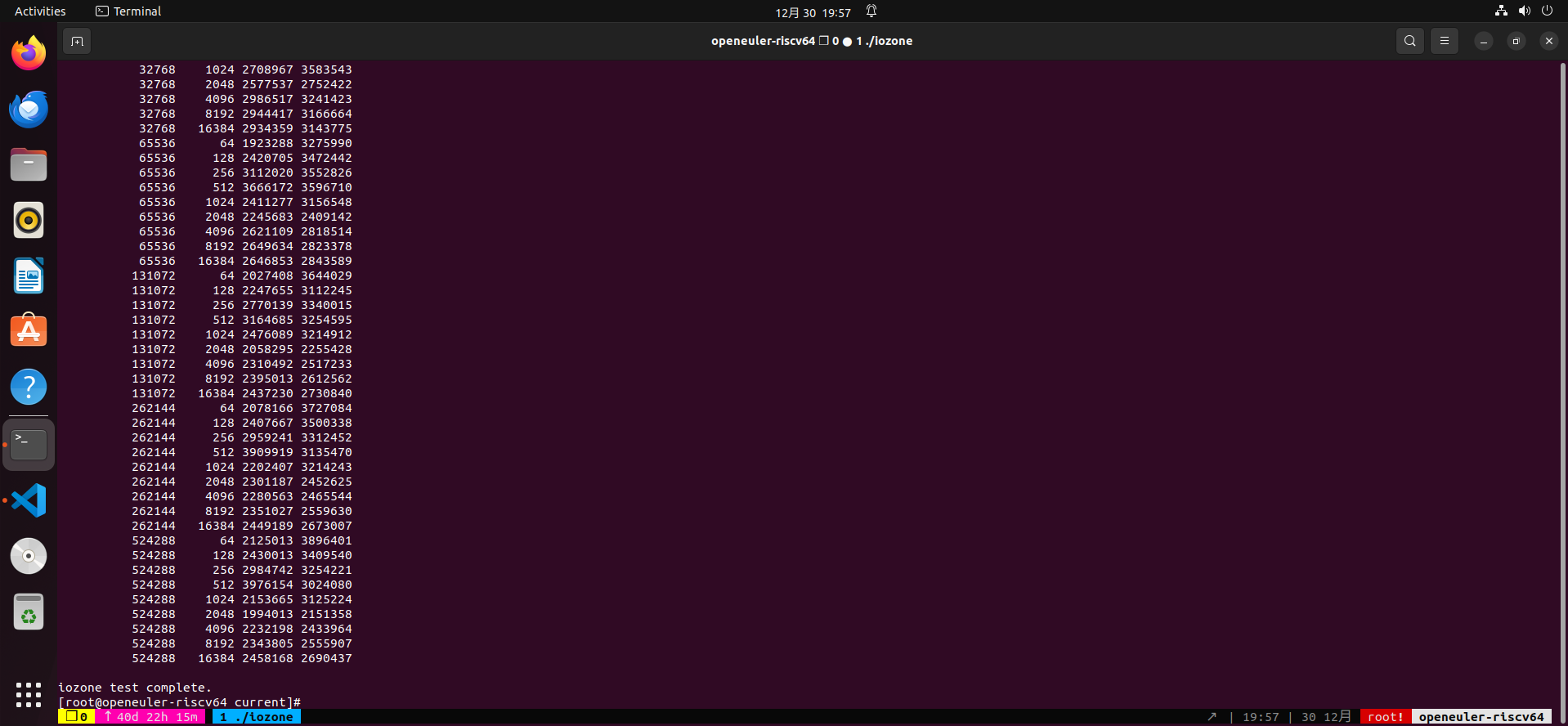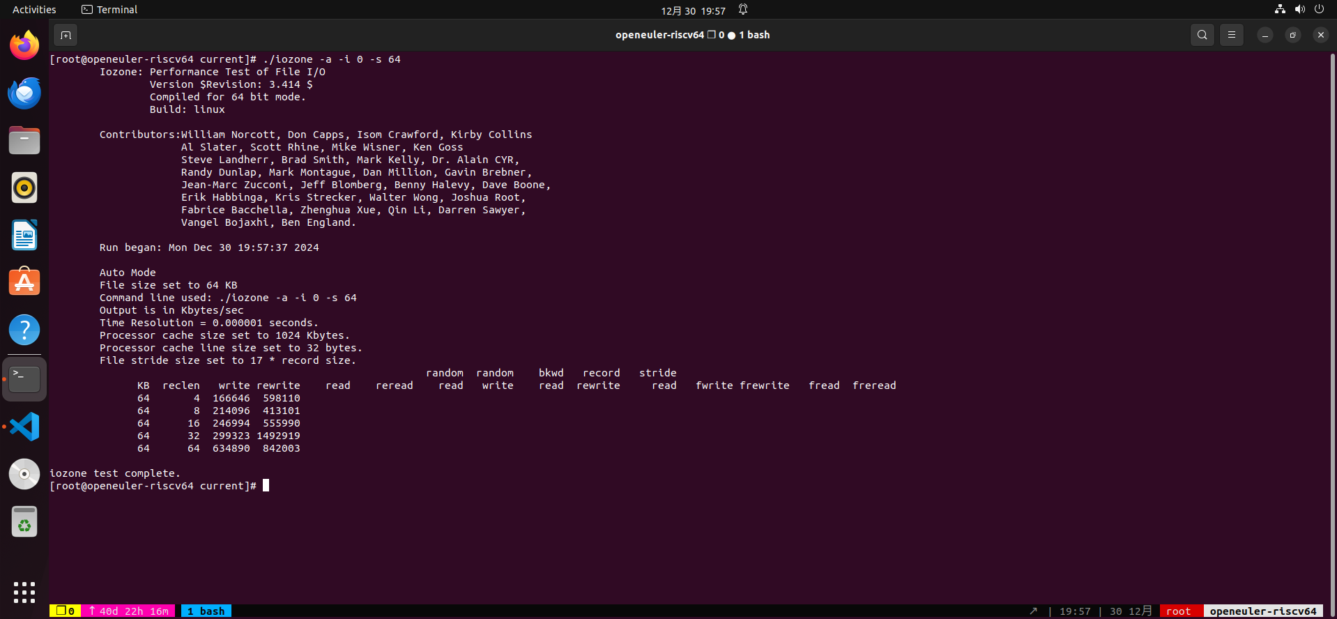 ./iozone -a -i 0 选定某个编号的样例进行测试(-i number)