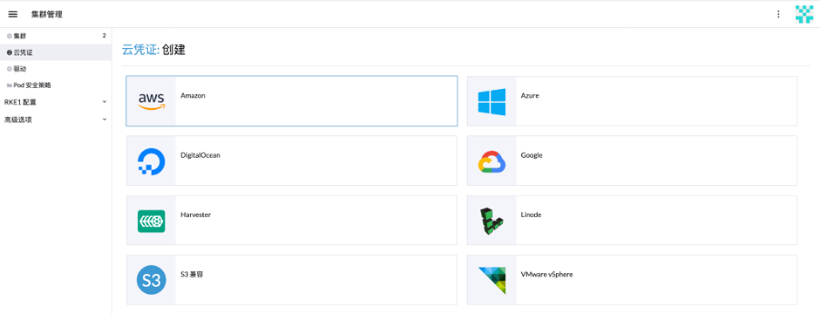 基于 EC2 Node Driver 配置弹性 RKE2 集群相对复杂一些。首先需要配置好 AWS 的访问密钥,Rancher 支持大量的公有云生态,在 AWS 上使用过程和其他云基本一致。