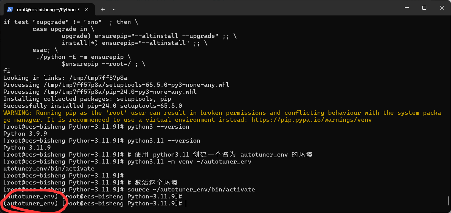 # 使用 python3.11 创建一个名为 autotuner_env 的环境