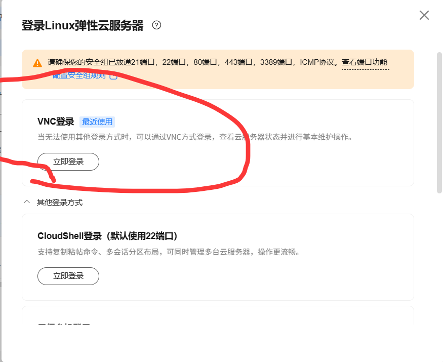 sshd_config文件中的PasswordAuthentication设置为no,需要修改为yes。在华为云控制台中找到服务器,点击右侧的管理,然后点击远程登录。 - 这个图是之前的了,现在的样式如下,但是总归是找到VNC登录