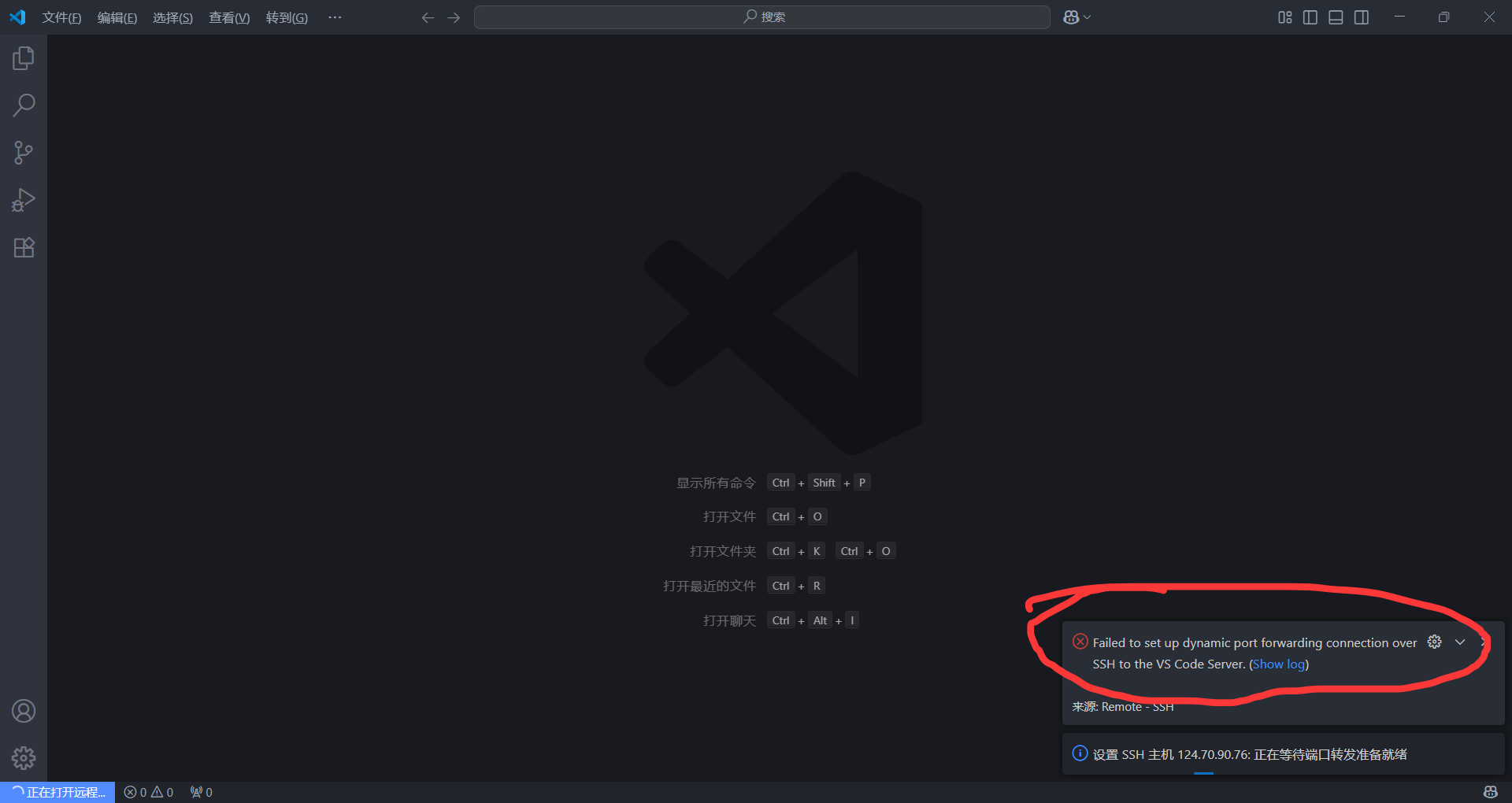 - 在你配置好密码登录之后,应当可以在powershell或者cmd ssh连接了,但是还可能遇到的是vscode无法远程连接的问题: