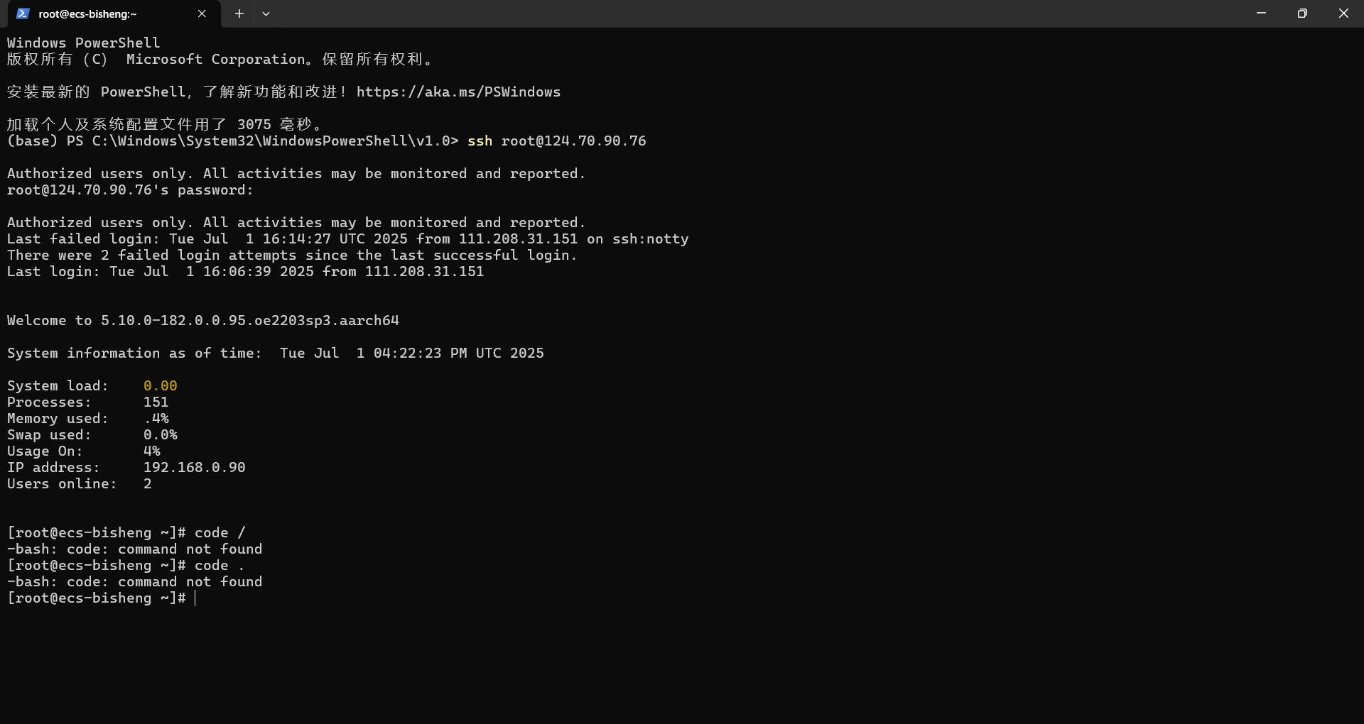 例:ssh root@<服务器公网IP>ssh root@124.70.90.76 - 注意: 连接时需要输入密码,密码是你在购买云服务器时设置的密码。