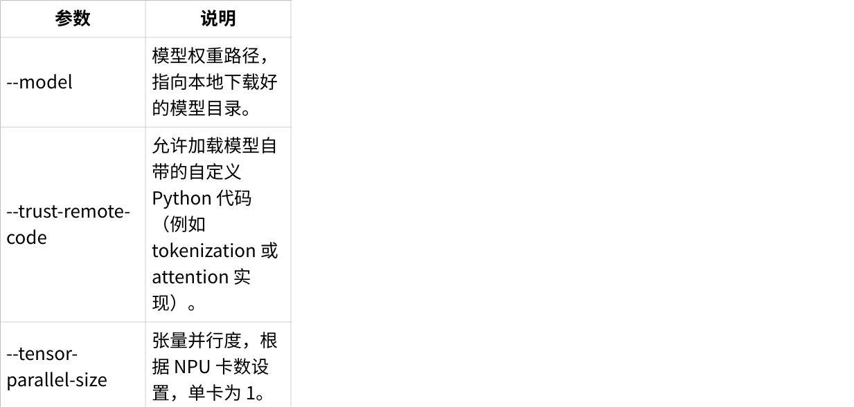 - --tensor-parallel-size: 根据你的 NPU 卡数设置,单卡设为 1。