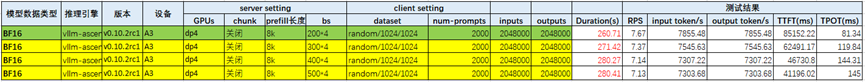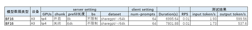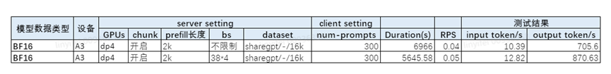 2、其他场景,DP4,max bs约束配置为1倍kv容量,关闭chunked prefill。