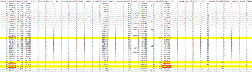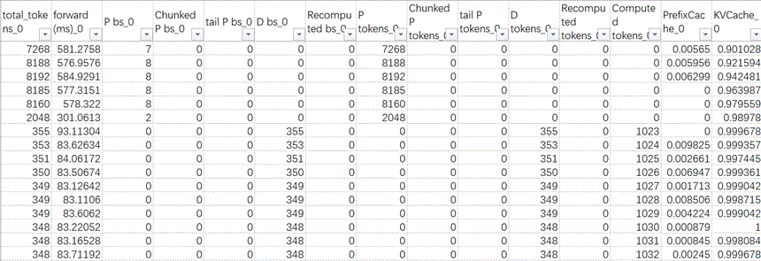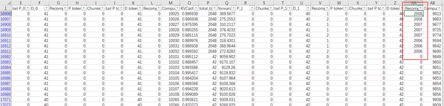 通过细致的对表格进行对比我们发现,这些异常值都是出现在有DP域重计算的时候,kv基本打满。