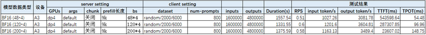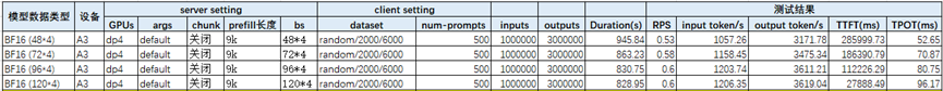 然后此时,我们看到从bs 48*4~128*4,性能都在一直提升,我们怀疑当重计算达到一定量级时,性能会出现下滑,因此随着batch 提升一定是有一个拐点的,由于之前数据总量限制,这次我们将测试的总prompt数增加到800条,测试了DP4下,每个DP域bs 48、120、200几组作为对比。