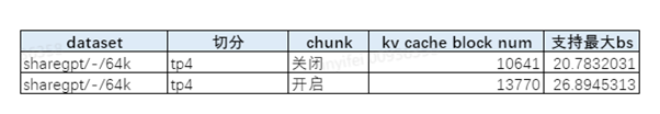 在输出64k的场景,模型warmup时如果不开启chunked prefill,会按照64k的最大序列长度去warmup,这会导致gmm部分的激活值非常大,从而降低了KV Cache的容量。通过服务化日志打屏的kv cache block num指标发现,在开启chunked prefill后,KV Cache的空间多了29%。