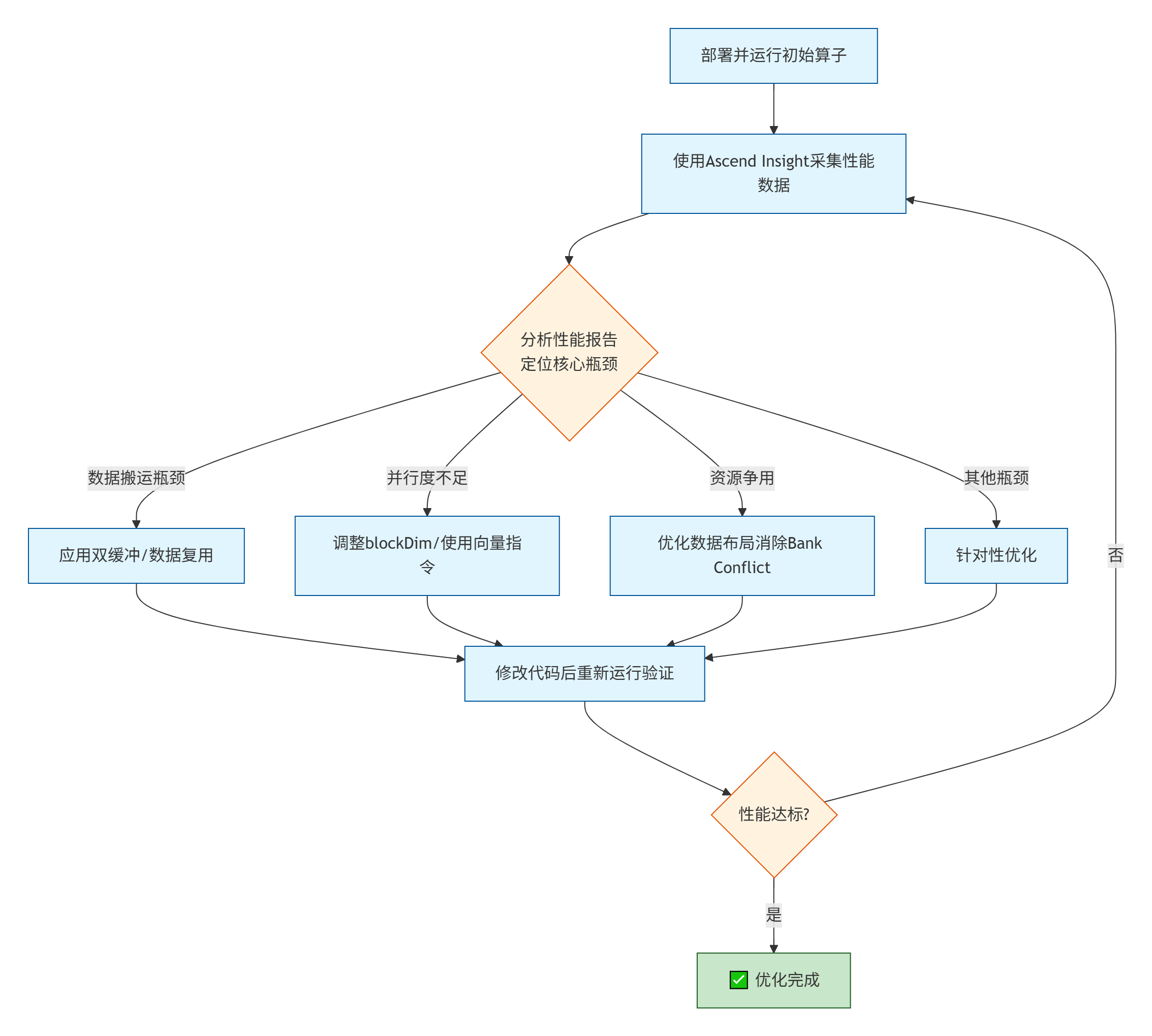 🔬 科学循证是准则:依赖 Ascend Insight等性能分析工具,建立“Profile-Hypothesize-Validate”的闭环,是避免盲目优化、高效解决问题的唯一路径。