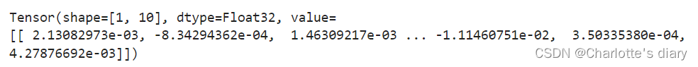 我们构造一个输入数据,直接调用模型,可以获得一个十维的Tensor输出,其包含每个类别的原始预测值。