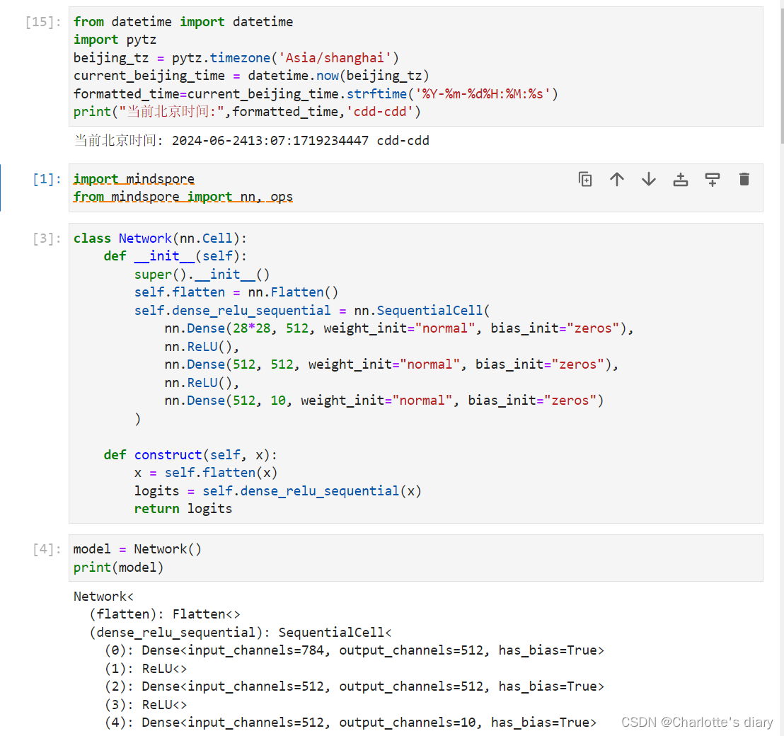 class Network(nn.Cell): 定义了一个类,继承自nn.Cell。