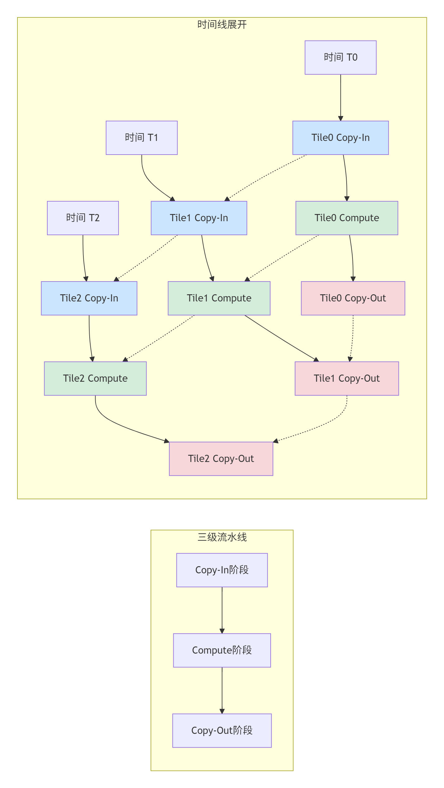 MlaProlog最核心的创新是其三级流水线结构,实现了计算与数据搬运的完美重叠。