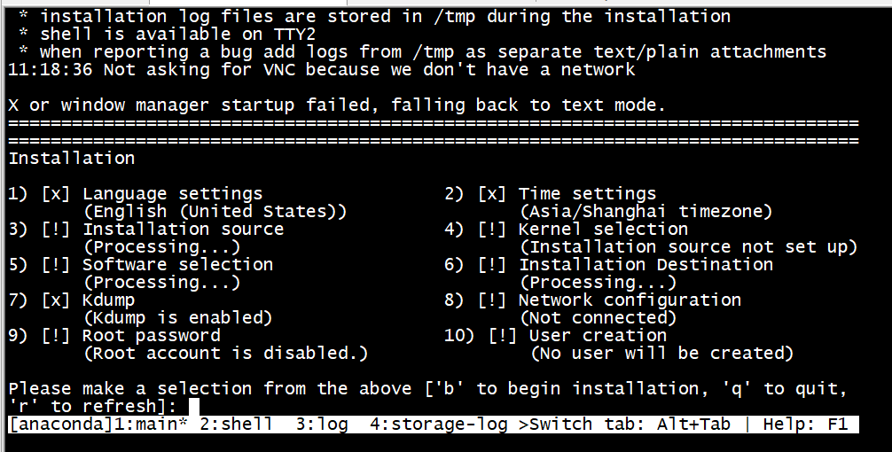 如果不带–noautoconsole,不会自动进入console,后需执行virsh console <域名>进入安装界面,如下图: