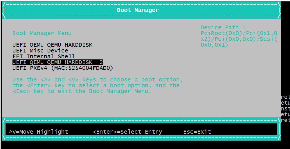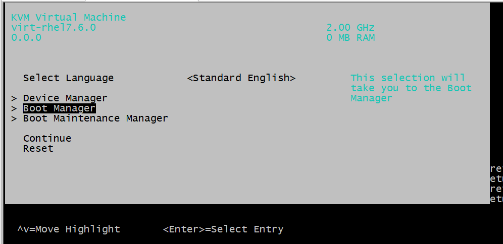 选择Boot Manager,选择CDROM设备启动(–disk path=/root/AnolisOS-8.6-aarch64-minimal.iso,format=raw,bus=scsi,readonly=on 替换成–location /root/AnolisOS-8.6-aarch64-minimal.iso,这里可能会更加清晰):