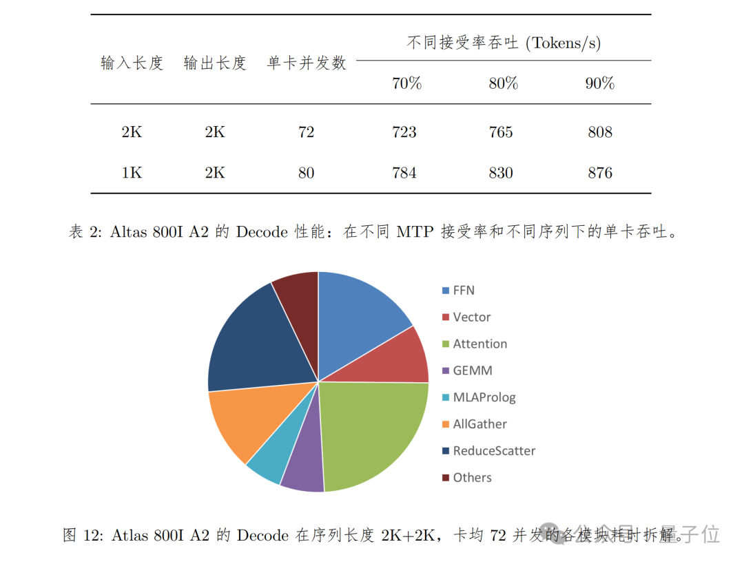 在硬件部署上,华为团队根据不同硬件配置——CloudMatrix 384超节点和Atlas 800I A2推理服务器,针对性地采取了不同的部署优化策略。为解耦Prefill和Decode阶段的时延约束,昇腾采用PD分离部署方式。