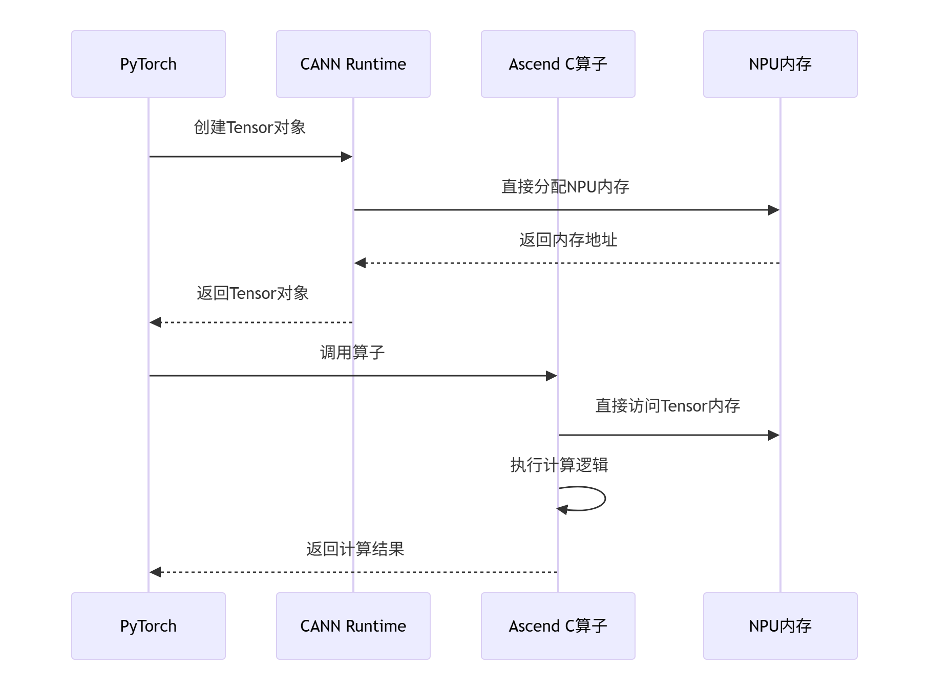 零拷贝的核心思想是内存地址空间共享(Memory Address Space Sharing)。通过CANN的统一内存管理机制,不同场景中的Tensor数据可以在NPU内存中保持固定的地址,避免在不同运行时环境之间进行频繁的数据拷贝。