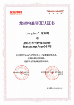 当前,ArgoDB V6.0 已通过兆芯平台兼容性认证,完成与兆芯全系10余款处理器的深度适配。经联合测试验证,其在功能完备性、系统可靠性等核心指标上表现优异。基于兆芯处理器的架构优势,ArgoDB为企业业务连续性提供强保障,筑牢安全合规硬底座,助力行业用户构建自主可控、高效安全的数字化转型基座。