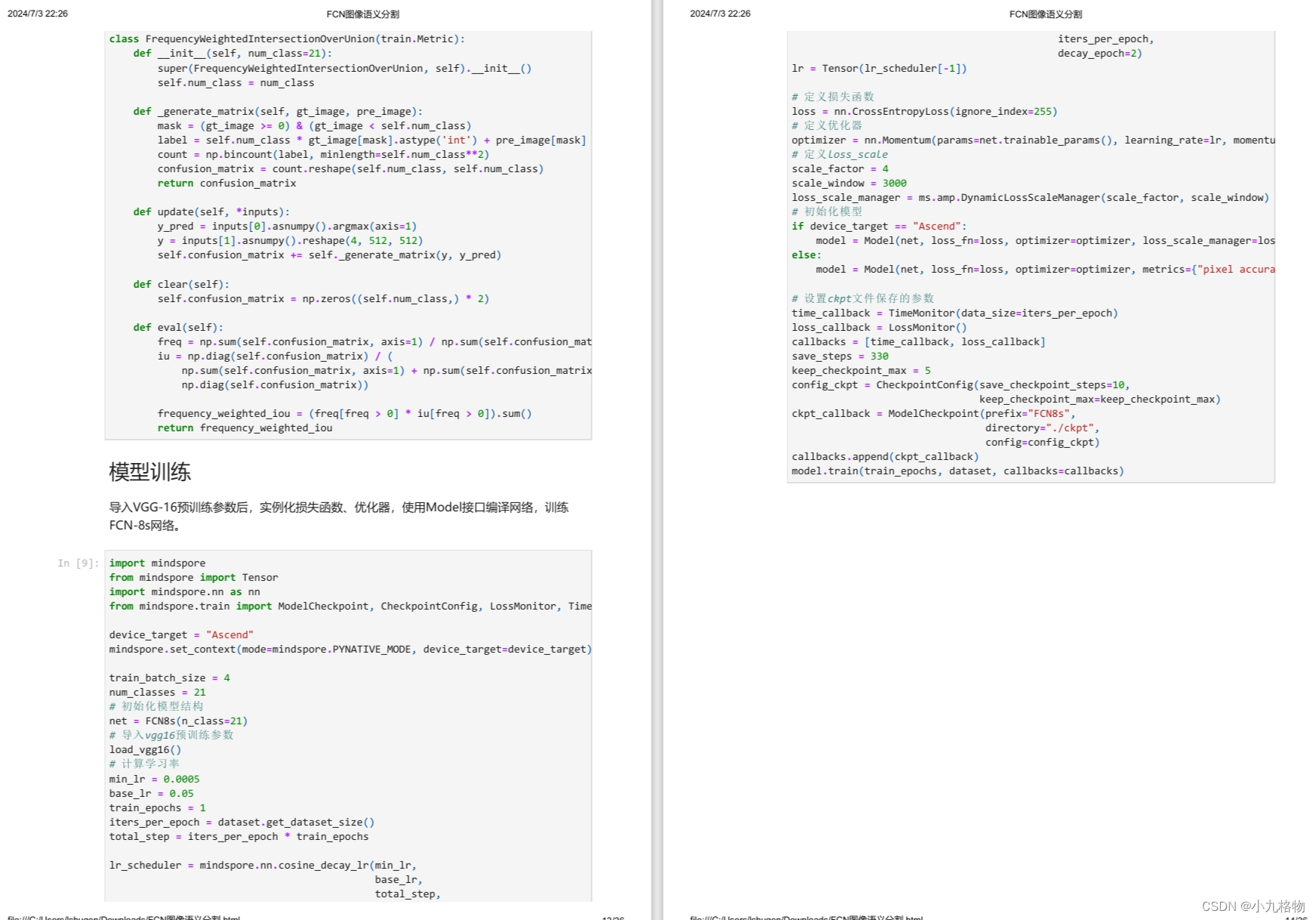 语义分割是对图像中每个像素点进行分类,仍是分类问题,故损失函数选择交叉熵损失函数来计算FCN网络输出与mask之间的交叉熵损失。这里我们使用的是mindspore.nn.CrossEntropyLoss()作为损失函数。