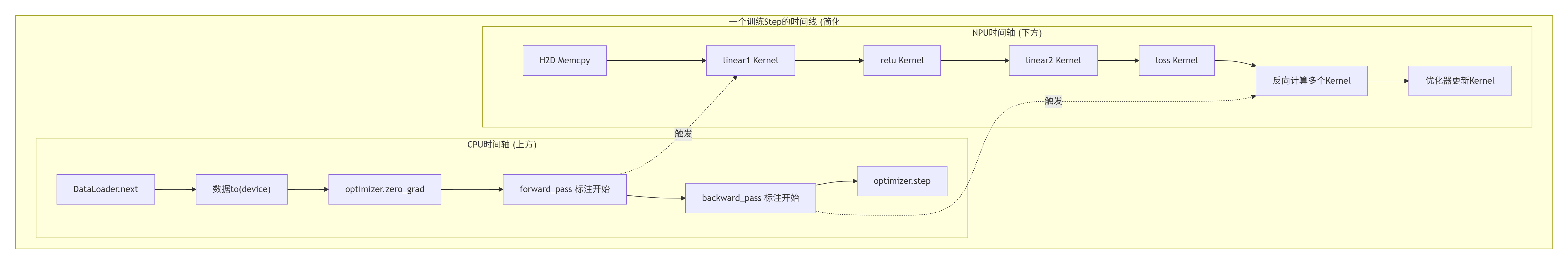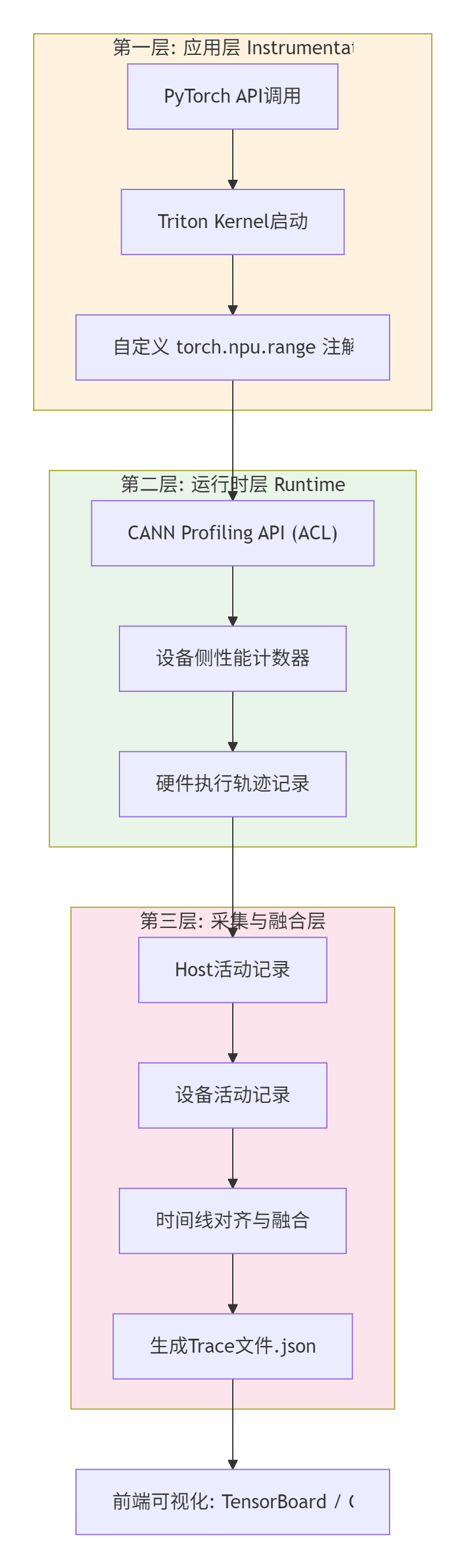 with torch_npu.profiler.profile(...) as prof:和torch.npu.range(“my_region”)标记的代码块,会在CANN运行时生成一个“活动记录”。Triton算子本身也会自动注入这类标记。 -