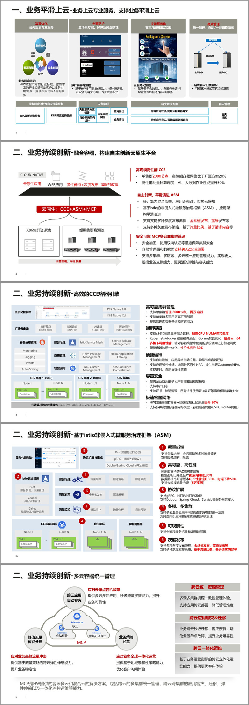 在数据使能方面,方案提出以DGC(数据治理中心)为核心的一站式数据运营平台,整合了数据集成、开发、治理与服务化能力。通过CDM、DRS等工具实现多源异构数据的高效接入与迁移,并依托GaussDB系列数据库(包括openGauss与MySQL兼容版本)提供高可用、高扩展的数据存储与分析能力。逻辑数据湖与实时数据分析能力帮助企业实现全域数据运营,支撑智慧政务、智能制造等典型场景。