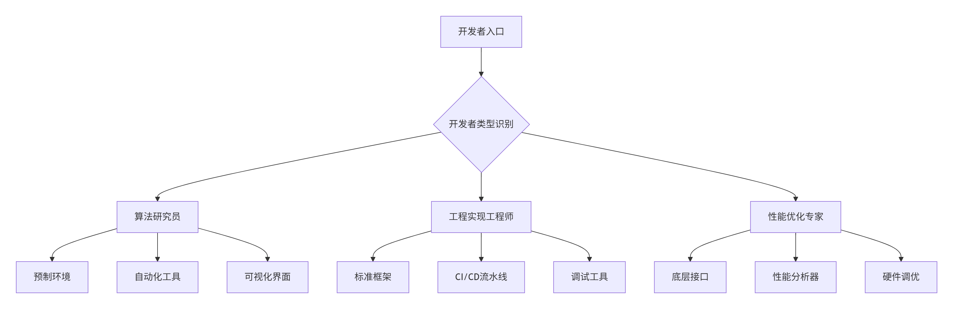 实战洞察:经过多个大型团队管理经验,我发现识别开发者类型并针对性提供工具链比统一的技术方案更有效。算法研究员需要"开箱即用",而性能专家需要"完全可控"。