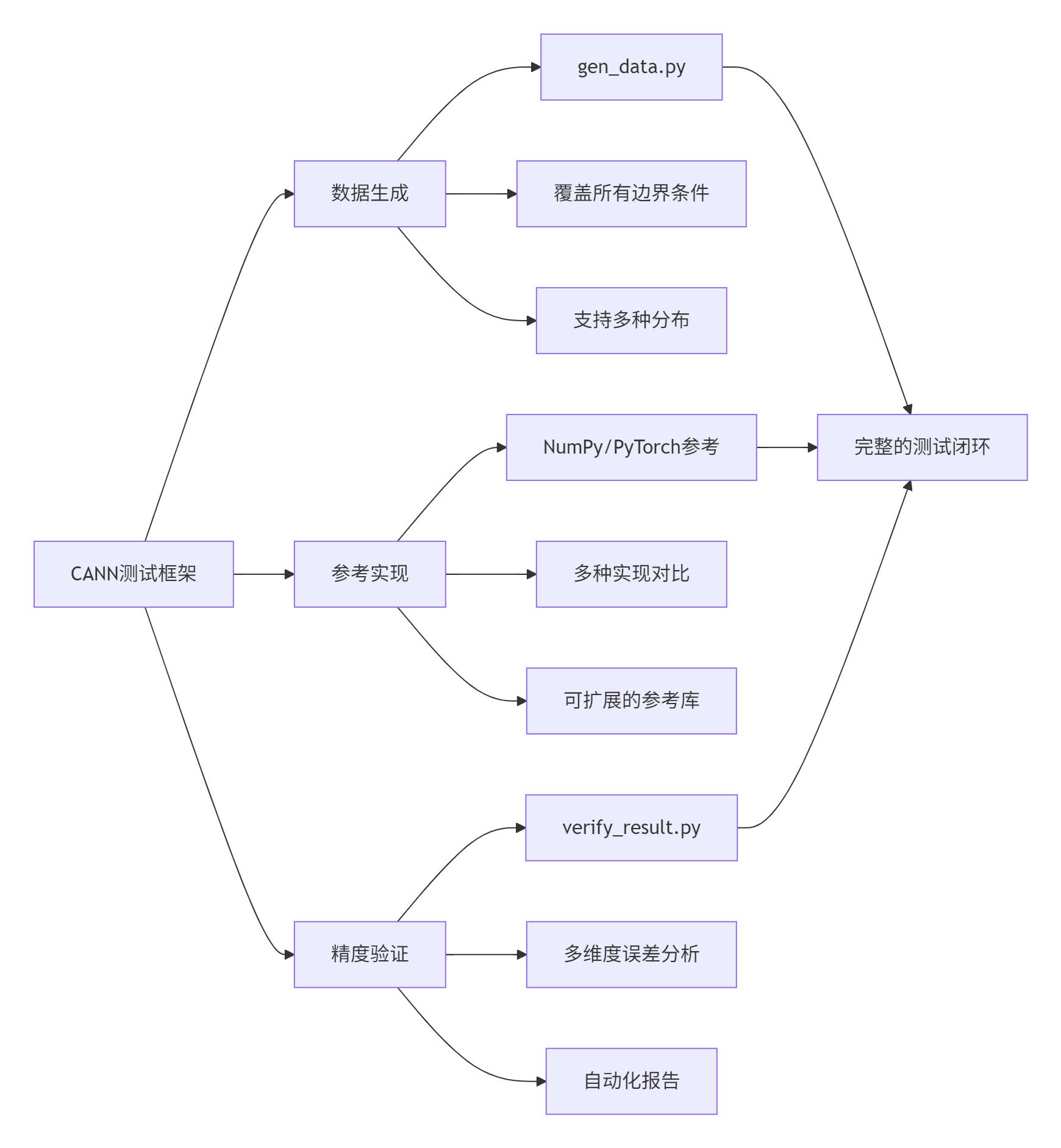 本文将深度剖析华为昇腾CANN算子测试框架中gen_data.py与verify_result.py的设计哲学与实现原理。文章将从测试数据生成的科学方法论出发,详解如何构造覆盖边界条件、特殊值的测试用例。接着深入精度验证的多维度体系,包括绝对误差、相对误差、信噪比等多种验证指标。通过完整的实战案例,展示从测试数据生成、参考实现对比、到自动化回归测试的全流程。文中包含5个Mermaid流程图、真实误差分析数据、企业级测试框架设计,以及基于13年经验的精度调试心法,为你构建坚如磐石的算子质量保障体系。