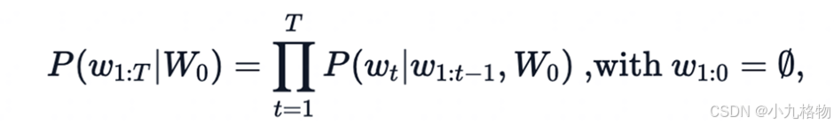 一个文本序列的概率分布可以分解为每个词基于其上文的条件概率的乘积