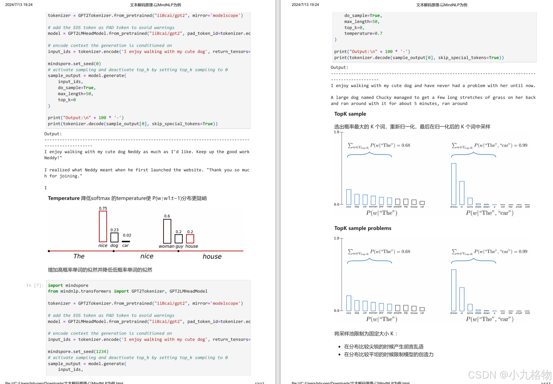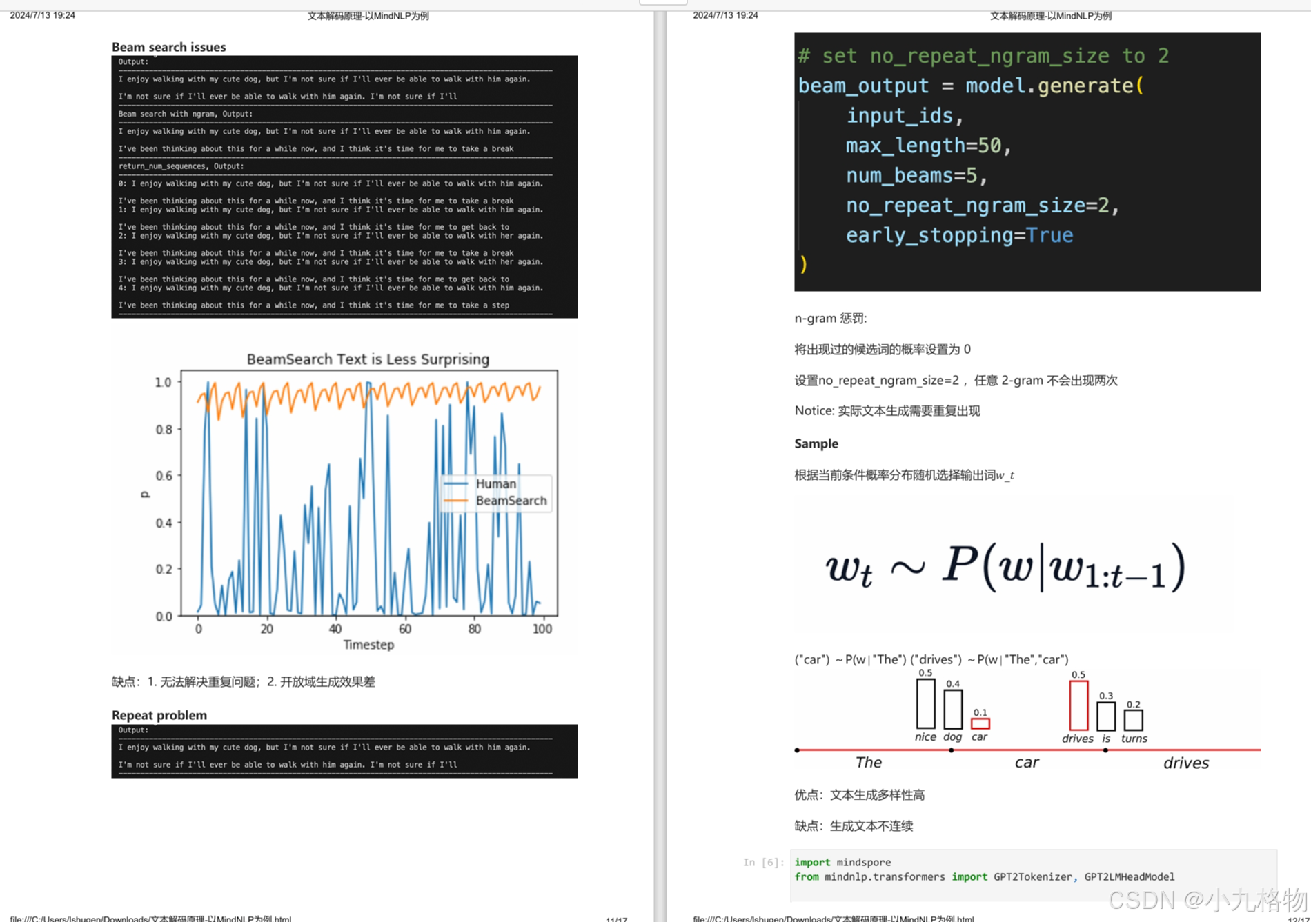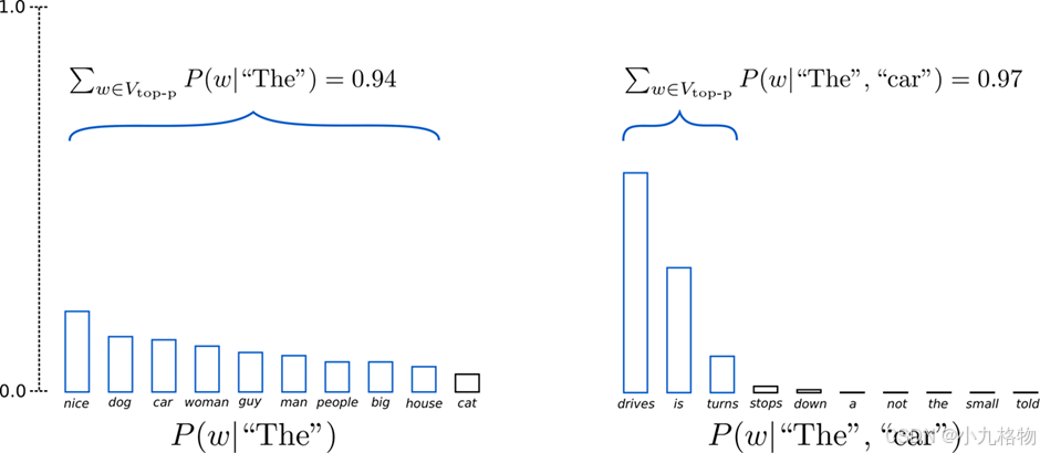 个词,并从中最终选择出概率最高的序列来降低丢失潜在的高概率序列的风险。一个文本序列的概率分布可以分解为每个词基于其上文的条件概率的乘积。采样池可以根据下一个词的概率分布动态增加和减少。增加高概率单词的似然并降低低概率单词的似然。都简单地选择概率最高的词作为当前输出词。在分布比较平坦的时候限制模型的创造力。个词,重新归一化,最后在归一化后的。的最小单词集中进行采样,重新归一化。在分布比较尖锐的时候产