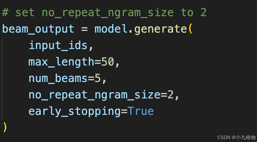 设置no_repeat_ngram_size=2 ,任意 2-gram 不会出现两次