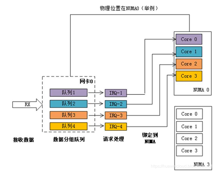 图1-2 NUMA绑定:中断绑定到指定核,避免跨NUMA访问内存