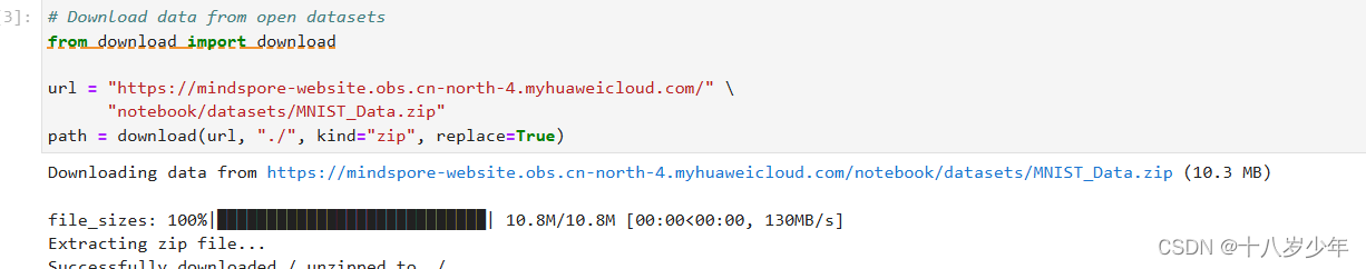 MindSpore提供基于Pipeline的数据引擎,通过数据集(Dataset)和数据变换(Transforms)实现高效的数据预处理。在本教程中,我们使用Mnist数据集,自动下载完成后,使用提供的数据变换进行预处理。mindspore.dataset