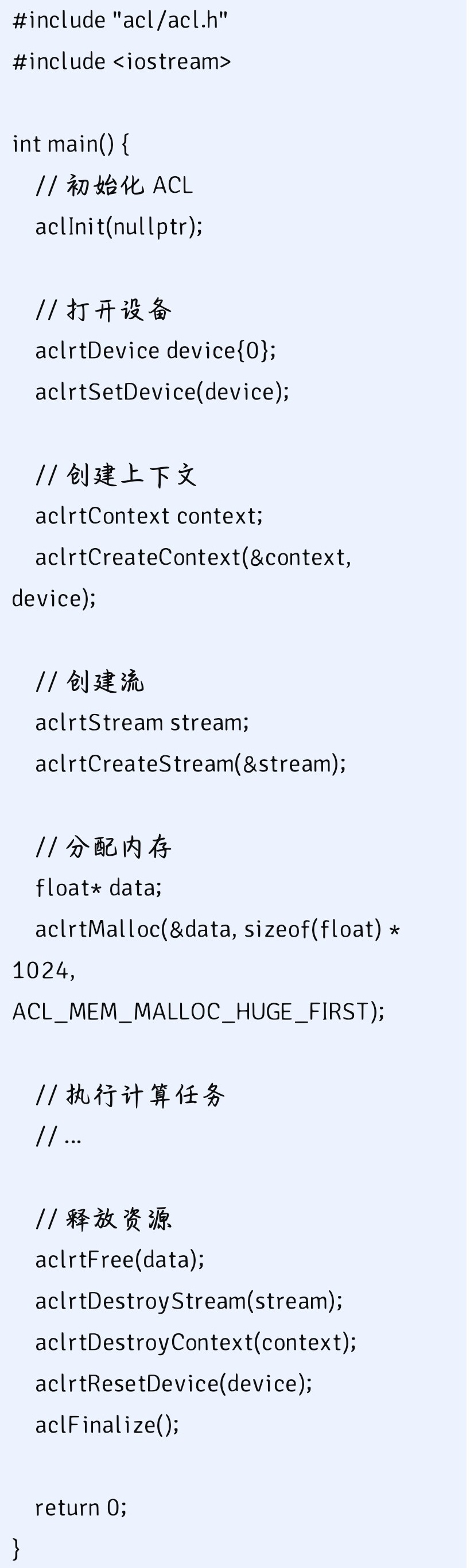 以下是一个简单的 CANN 初始化和使用示例,展示了如何利用 CANN 进行基本的张量操作: