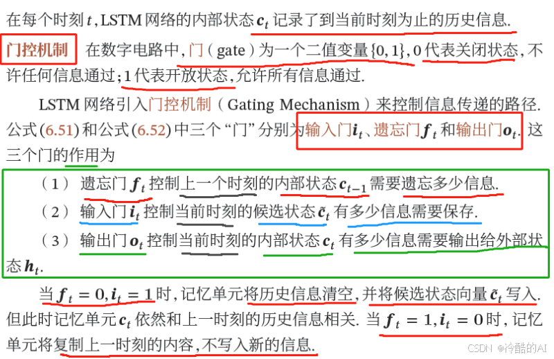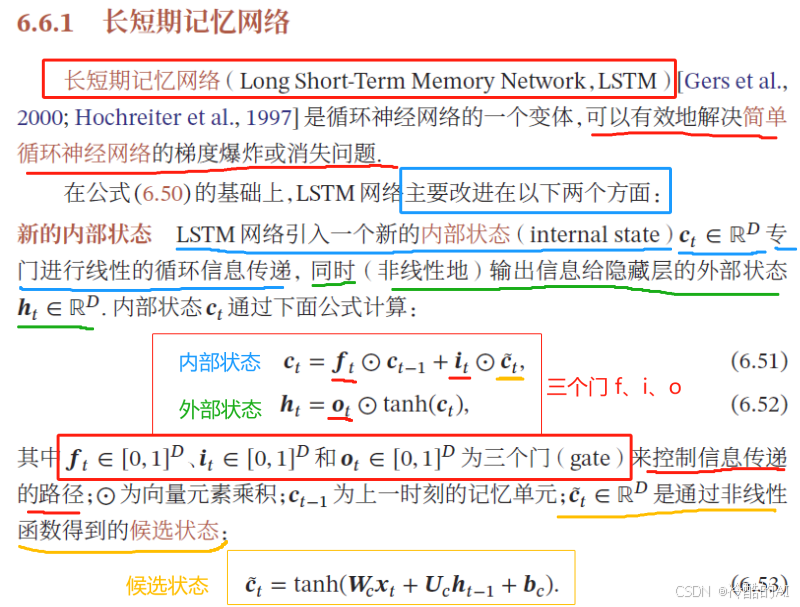 RNN网络容易产生长程依赖问题(梯度消失、梯度爆炸),在序列较长时,在序列尾部已经基本丢失了序列首部的信息。为了克服这一问题,LSTM(Long short-term memory)被提出,通过门控机制(Gating Mechanism)来控制信息流在每个循环步中的留存和丢弃。