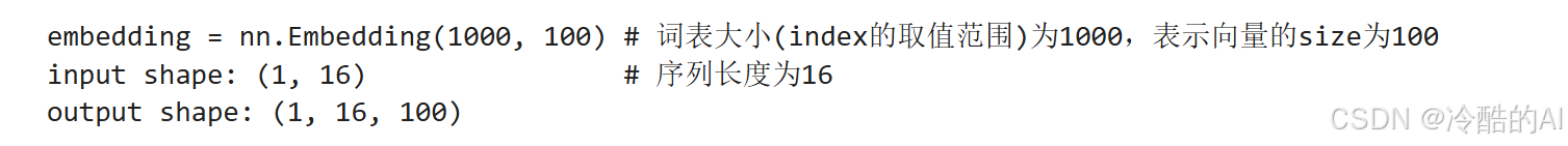 这里我们使用前文处理好的Glove词向量矩阵,设置nn.Embedding的embedding_table为预训练词向量矩阵。对应的vocab_size为词表大小400002,embedding_size为选用的glove.6B.100d向量大小,即100。