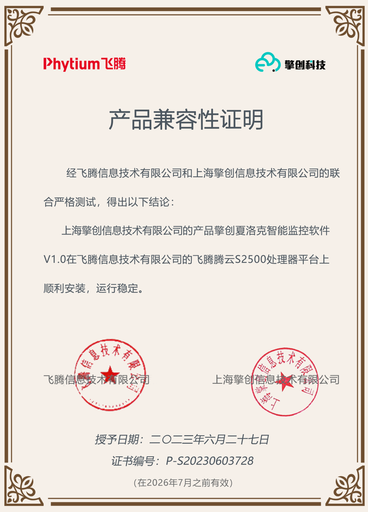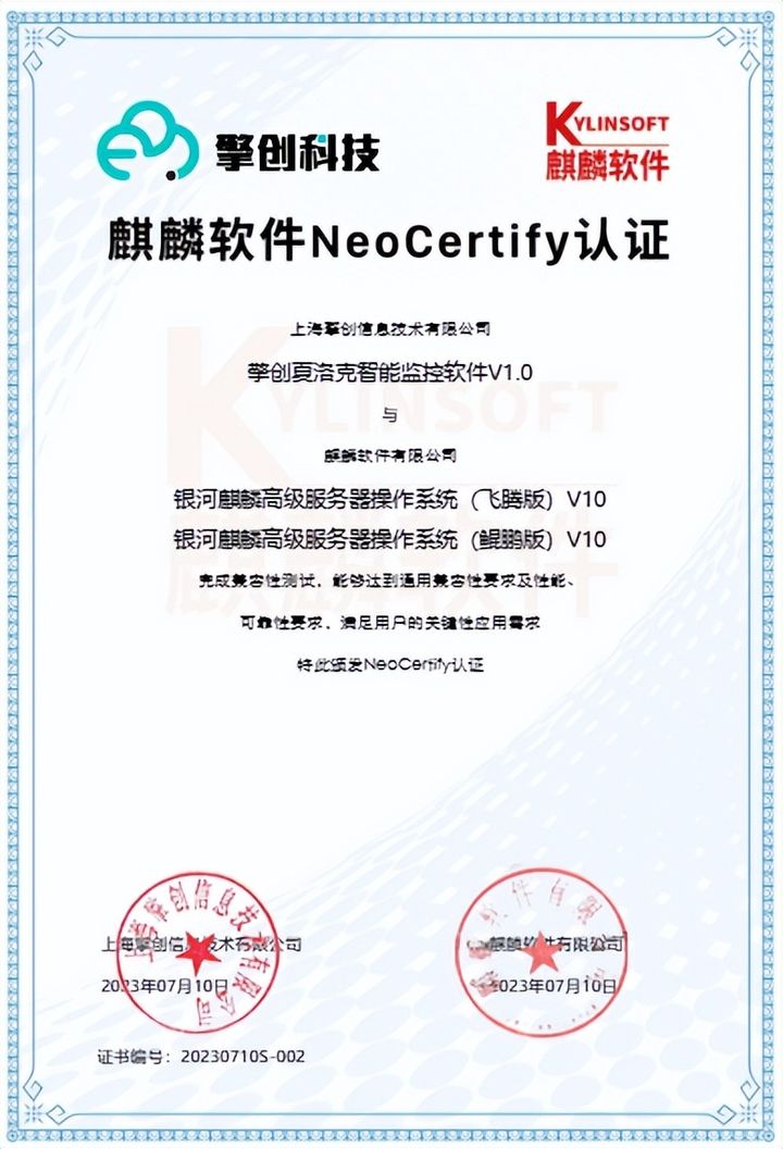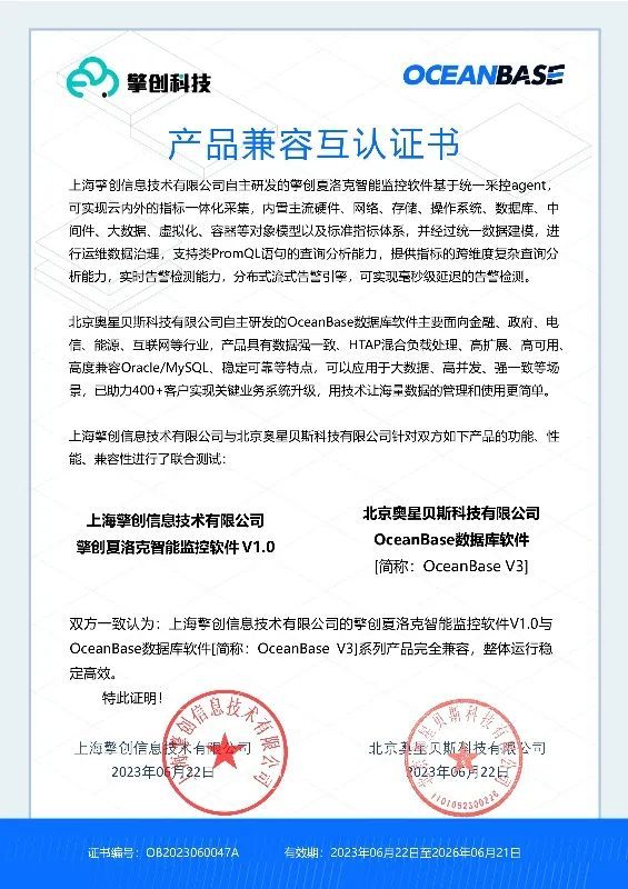 近日,擎创夏洛克智能监控软件完成基于飞腾+麒麟+OceanBase技术路线的产品适配,并取得产品兼容性互认证书。这一技术路线的突破,象征着擎创科技在信创生态领域再进一步,基于国产化平台的产品赋能能力得到又一次的实力印证。