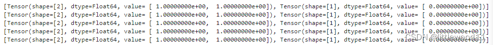 数据集加载后可以用create_tuple_iterator与create_dict_iterator接口创建数据迭代器,迭代访问数据.访问的数据类型默认为Tensor,若设置output_numpy=True,访问类型为Numpy.