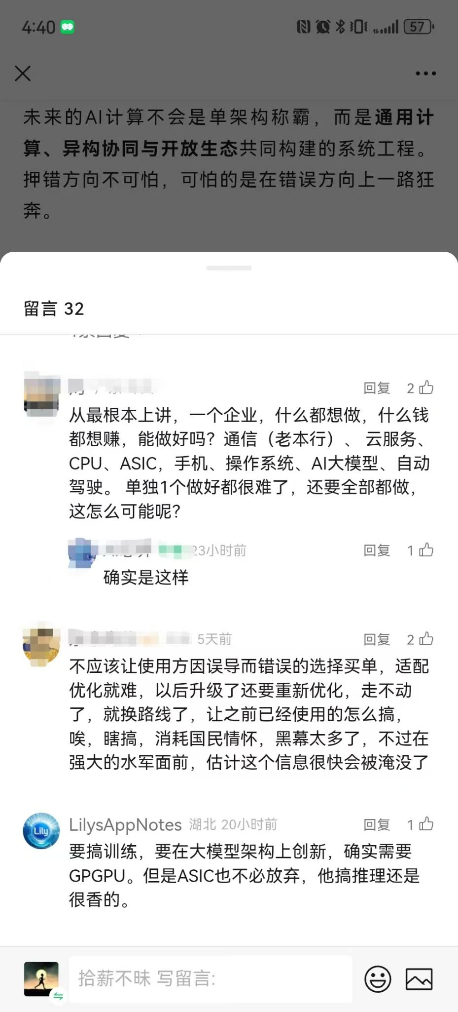 近期,随着“昇腾放弃ASIC转向GPGPU”的消息持续发酵,舆论场上给出的反应颇为激烈,从菊花厂拥趸到昇腾的用户和伙伴,各方观点甚至呈现出两极分化的状态。本月中旬,“昇腾改道”的消息刚刚露出,国内某些营销号瞬间进入尖叫时刻。还有在网上晒昇腾开发经验的博主,“除了sd基准模型能跑,还有glm2能用cpu推理,别的没一个能跑的...不管是容器还是社区建设都是一言难尽。有人分析,昇腾当前的问题主要在于没
