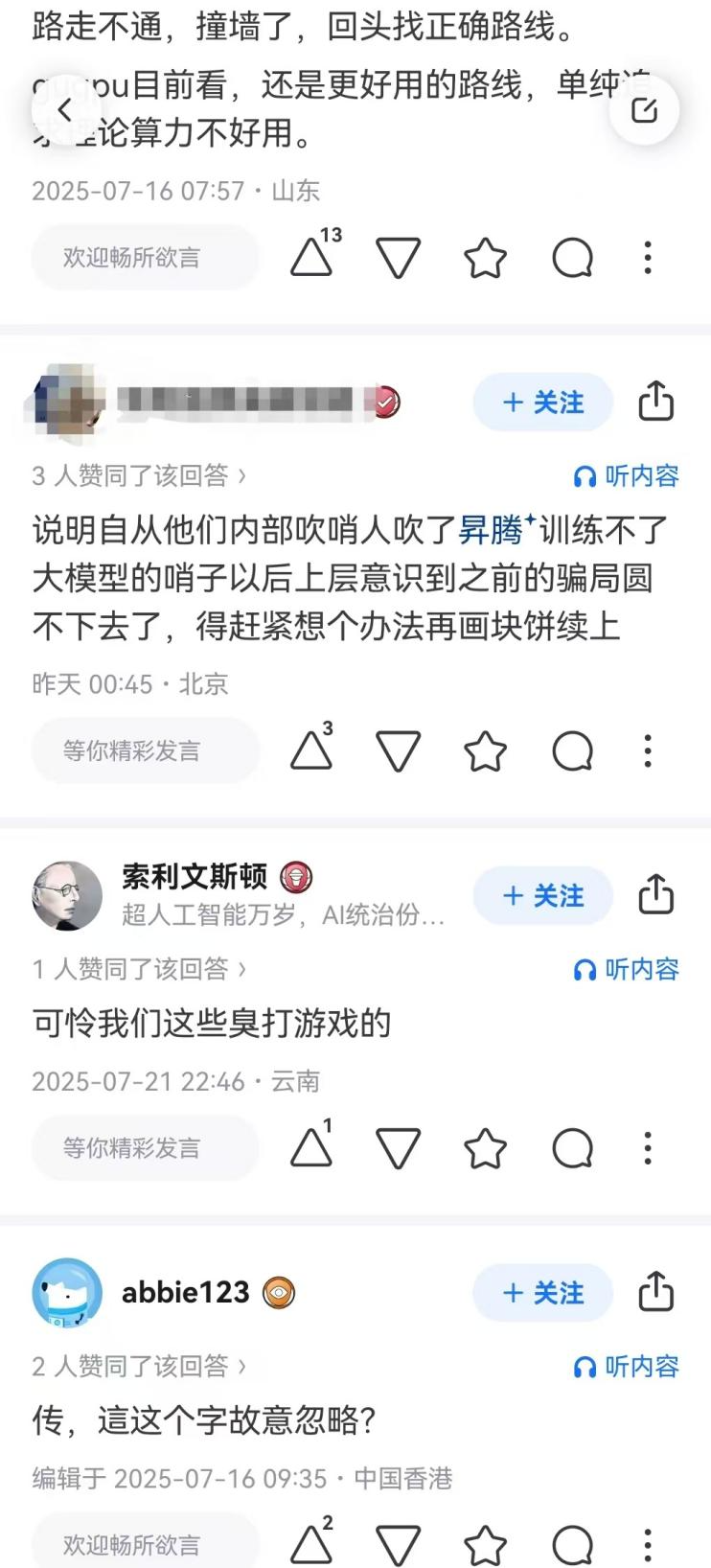 要说最为此关心紧张的,还得是相关利益者。随着种种迹象表明昇腾转向的必要性,相关用户和生态伙伴的前期投入,也陷入了危险边缘。这也让另一部分观点显得毒舌了许多。