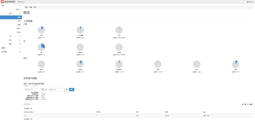 登录成功后可看到 OpenStack 的 web 界面: