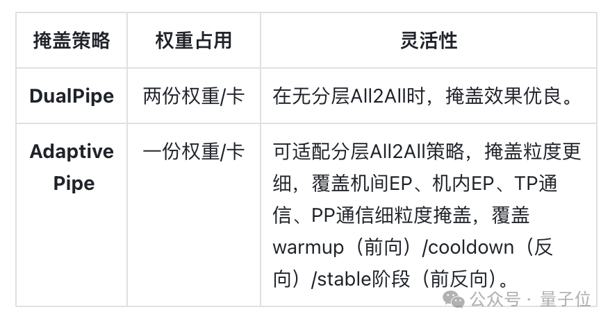 华为还提出了一套名为Adaptive Pipe的通信掩盖框架。在DeployMind仿真平台自动求解最优并行的基础上,采用层次化All-to-All降低机间通信和自适应细粒度前反向掩盖,实现通信几乎“零暴露”。
