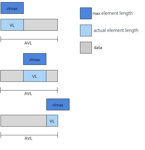 vtype 中 vlmul 和 vsew 主要影响 vlmax 的值,而 vlmax 影响每次处理元素的数量,vl = min (vlmax, AVL)。其中 AVL 全称 Application Vector Length,表示应用程序指定要处理的元素总数。