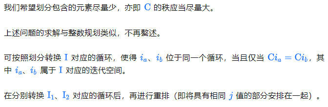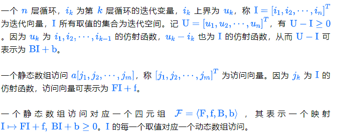 在 MLIR 'affine' dialect 中,数组访问依赖分析的实现更加完备(因为在 MLIR 中数组访问的相关信息被完全保留了,而非像在 IR 中那样需要从 getelementptr 等指令反向推导出来),不仅支持依赖关系判断,更支持较复杂的仿射划分。通过将有依赖关系的数组访问安排在一起,可以提升程序的时间/空间局部性,相互独立的部分也能并行。为了将有依赖关系的动态数组访问安排在一起,我