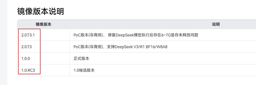 一般用户是根据自己的业务场景,比如说要跑DeepSeek满血版推理,则需要去看对应的镜像哪个版本满足要求,然后再根据镜像安装的CANN版本去看宿主机的固件驱动版本是否满足,如果不满足需要升级驱动固件。