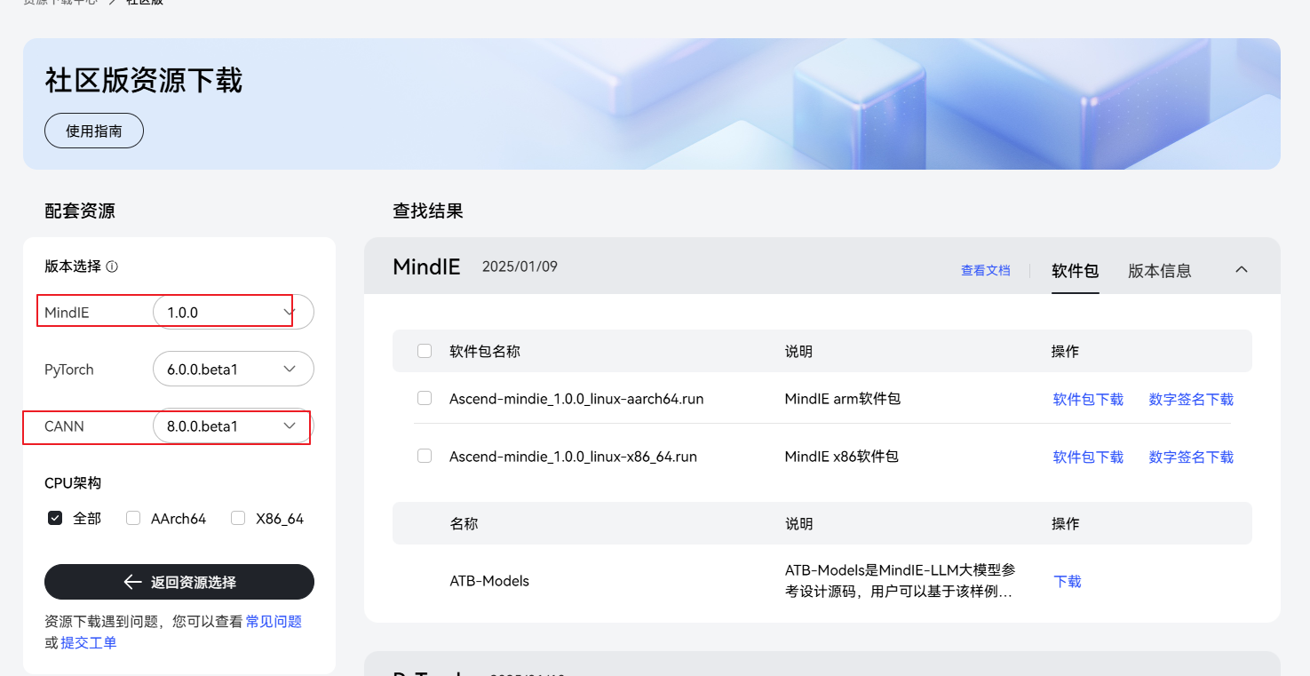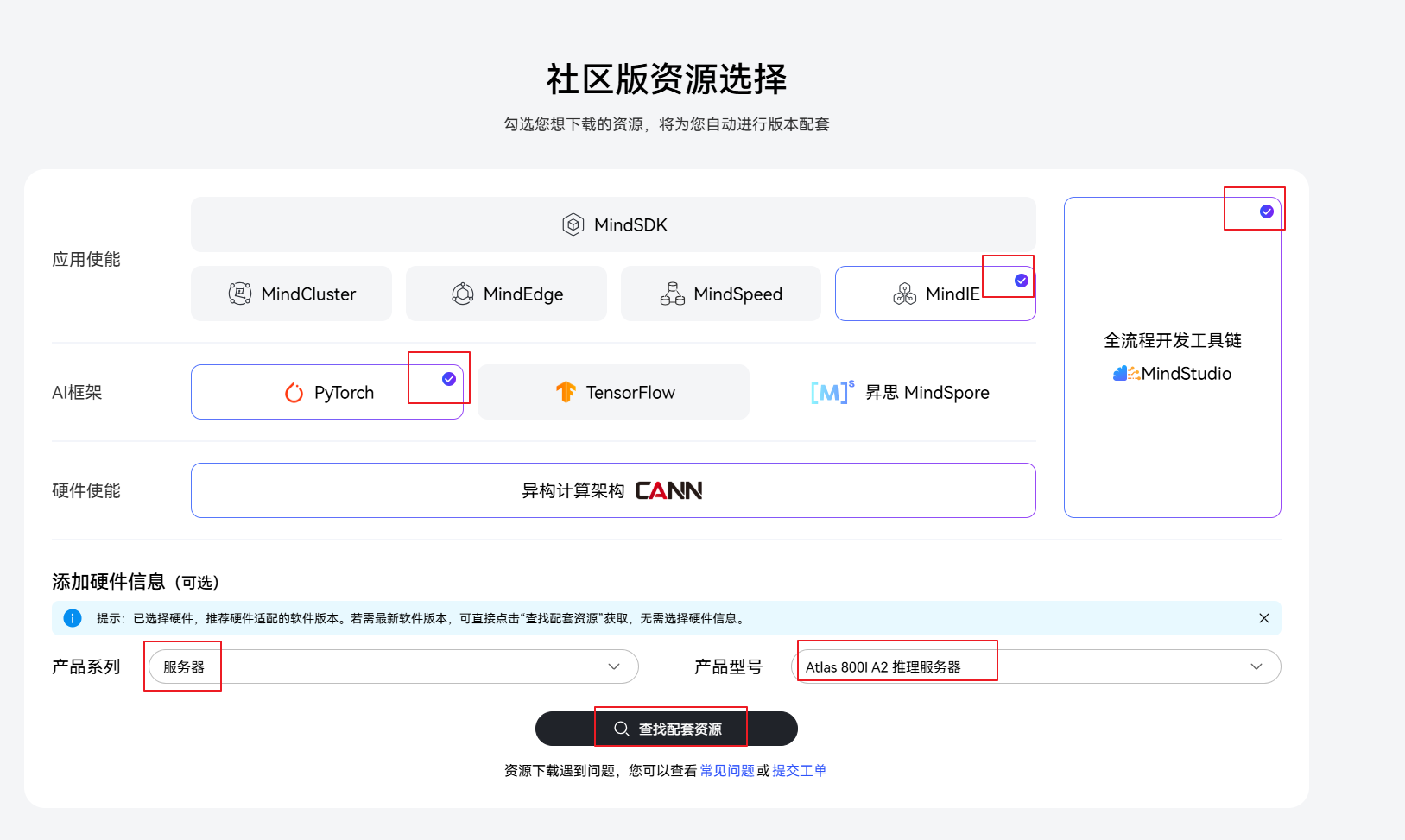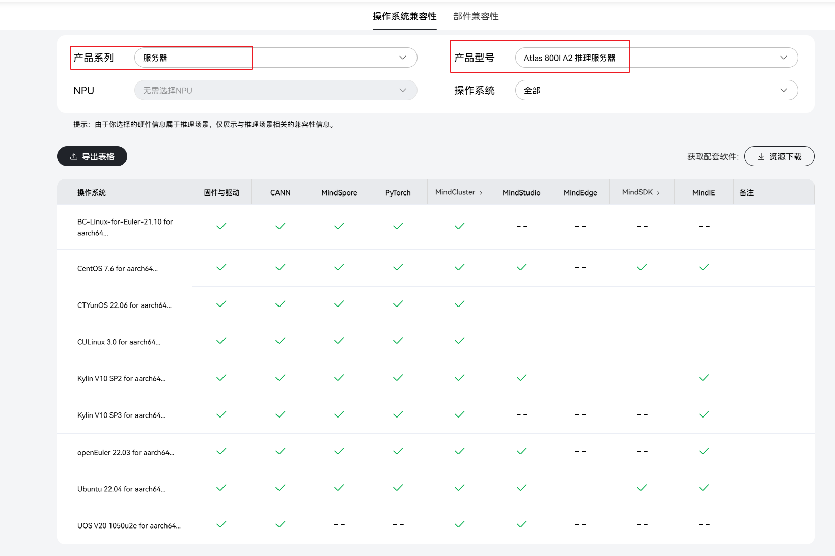 根据上面步骤3确定的CANN版本,来选择配套资源;也可以勾选CPU架构。